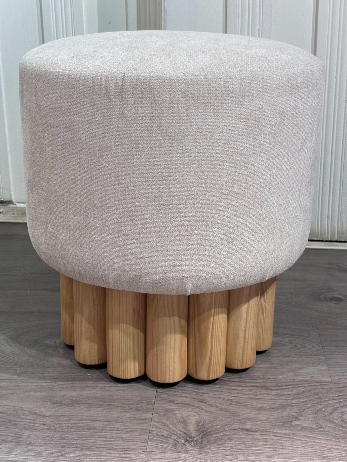 A blend of sleek wooden dowels and rich textures, the pouf brings elegance and warmth to any space. Designed with simplicity and style in mind.